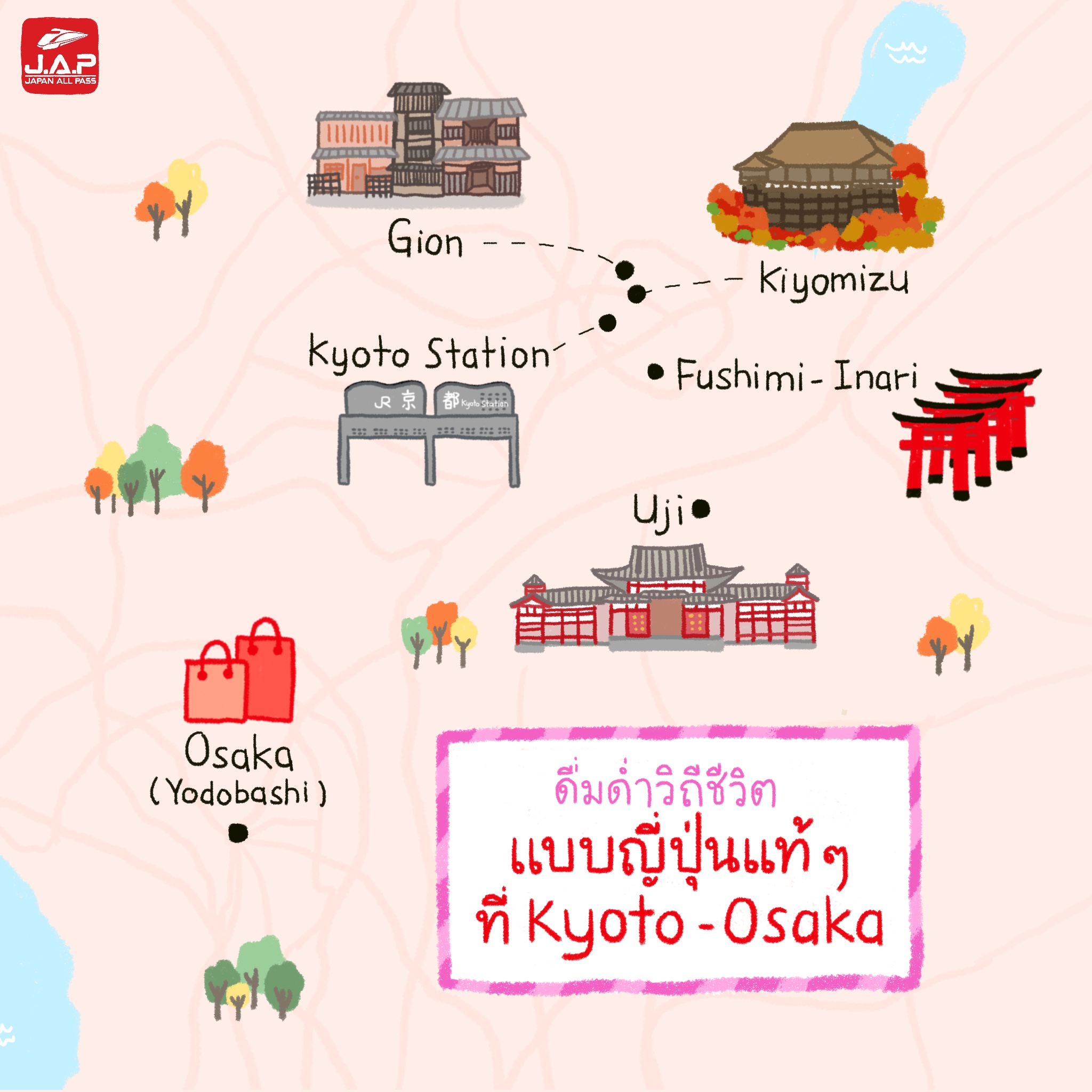 เชื่อว่าหลายคนที่ไปญี่ปุ่นซ้ำแล้วซ้ำเล่า ก็คงจะติดใจในวิถีชีวิตและวัฒนธรรมการใช้ชีวิตของคนญี่ปุ่นอยู่ไม่น้อย วันนี้ Japan All Pass ขอนำเสนอ แพลนเที่ยว Kyoto-Osaka ที่จะได้ไปสัมผัสชีวิตแบบญี่ปุ่นแท้ๆ