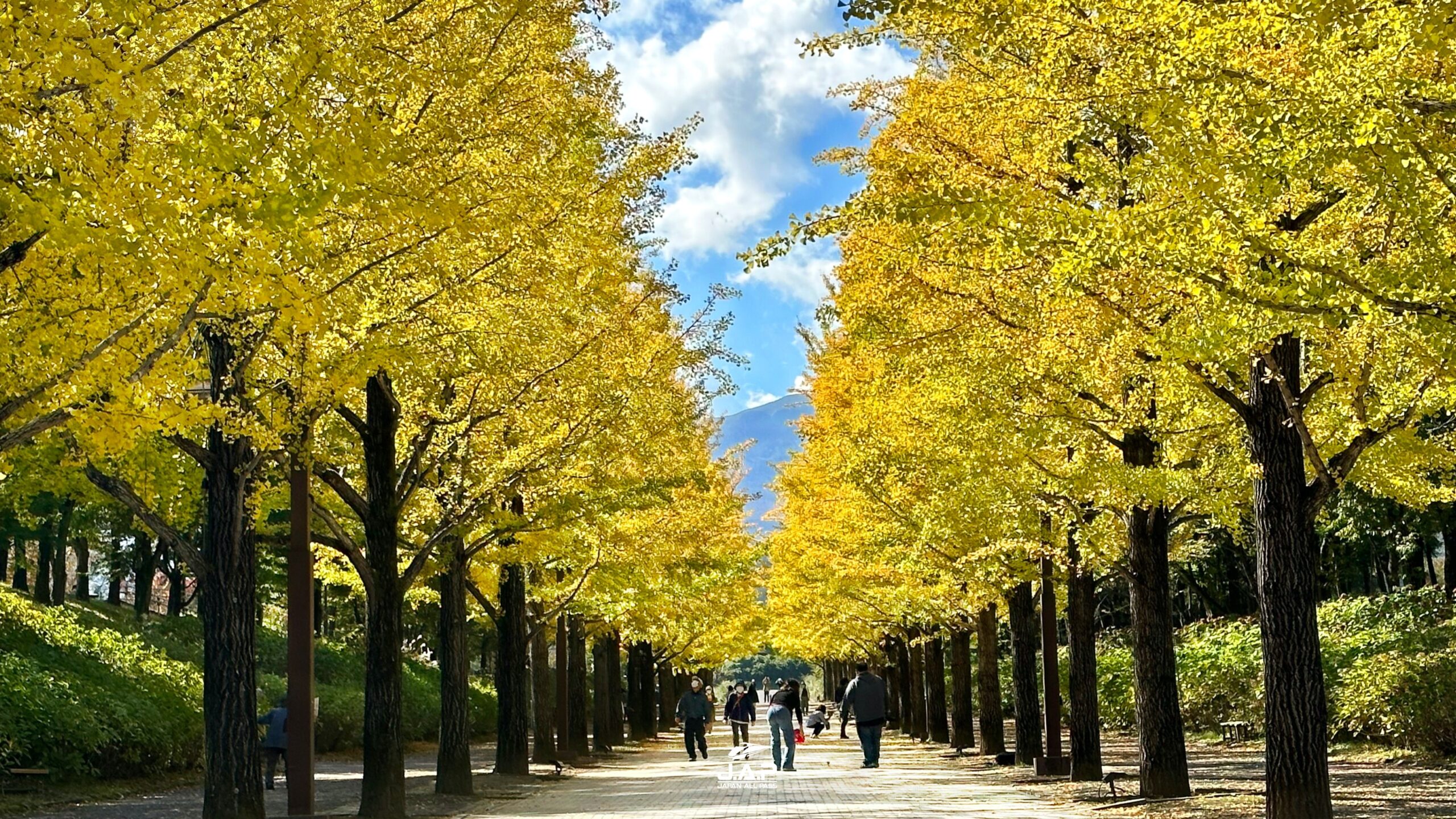 จุดเด่นของสวน Azuma Sports Park ในฤดูใบไม่ร่วงคือ อุโมงค์ต้นแปะก๊วย กว่าร้อยต้นที่พร้อมใจกันเปลี่ยนสีตลอดแนวทางเดิน 520 เมตร….. บรรยากาศงดงามเหมือนเรากำลังเดินในอุโมงค์ใบไม้สีเหลืองทอง