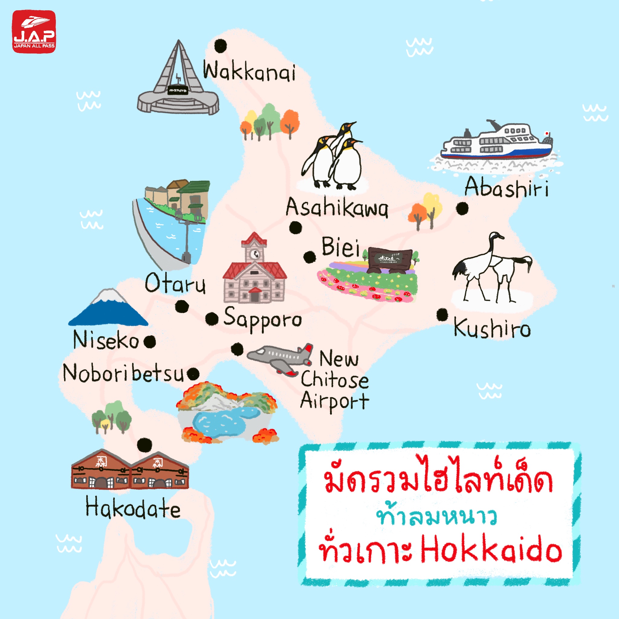มวลอากาศหนาวมาถึงแล้ว ใครที่ยังไม่รู้จะเดินทางออกไปเที่ยวไหน วันนี้ Japan All Pass รวบรวมไฮไลท์เด็ดของเมืองต่างๆ รอบเกาะ Hokkaido ไว้ให้แล้ว เที่ยวง่าย ไร้กังวล ด้วยบัตร JR Hokkaido Rail Pass พร้อมแล้วก็ออกเดินทางไปสัมผัสความหนาวท่ามกลางหิมะกันได้แล้ว