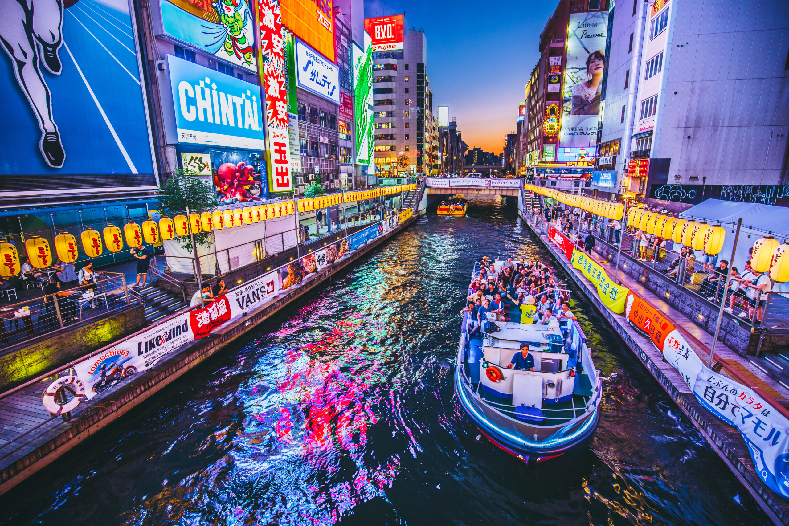 ไม่ว่านักช้อปตัวยงหรือนักช้อปมือสมัครเล่น ก็ต้องมาพ่ายแพ้ให้กับย่านชินไชบาชิ สวรรค์แห่งการช้อปปิ้งอย่างแท้จริง ไม่ว่าจะเป็นร้านขายของ หรือห้างสรรพสินค้าชั้นนำ ขนม อาหาร ตรงนี้เขามีหมด ที่เขาพูดกันว่าเงินไหลเป็นสายน้ำก็ไม่เกินจริงเลย นอกจากการช้อปปิ้งแล้วย่านนี้ที่พลาดไม่ได้ก็คือ ป้ายโฆษณากูลิโกะที่มองเห็นได้จากสะพานเอบิสุ ที่ถือว่าเป็นอีกหนึ่งสัญลักษณ์ของการมาเที่ยวที่โอซาก้าเลยทีเดียว บอกเลยว่าตอนกลางคืนคึกคักและสวยมากๆ
