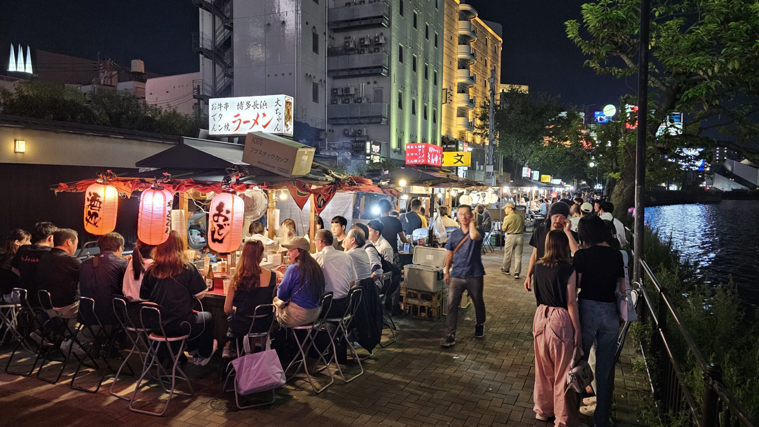 ตั้งอยู่ในย่าน Nakasu ซึ่งเป็นเกาะเล็กๆ ระหว่างแม่น้ำ Naka และแม่น้ำ Hakata ในฟุกุโอกะ ย่านนี้มีชื่อเสียงเรื่องแผงขายอาหารริมทางหรือ “Yatai” ที่นักท่องเที่ยวและคนท้องถิ่นชื่นชอบ Yatai ของ Nakasu เป็นที่รู้จักไปทั่วญี่ปุ่น เนื่องจากบรรยากาศที่เป็นเอกลักษณ์และอาหารอร่อยที่หลากหลาย เช่น ราเมน, โอเด้ง, ยากิโทริ และอาหารท้องถิ่นอื่นๆ