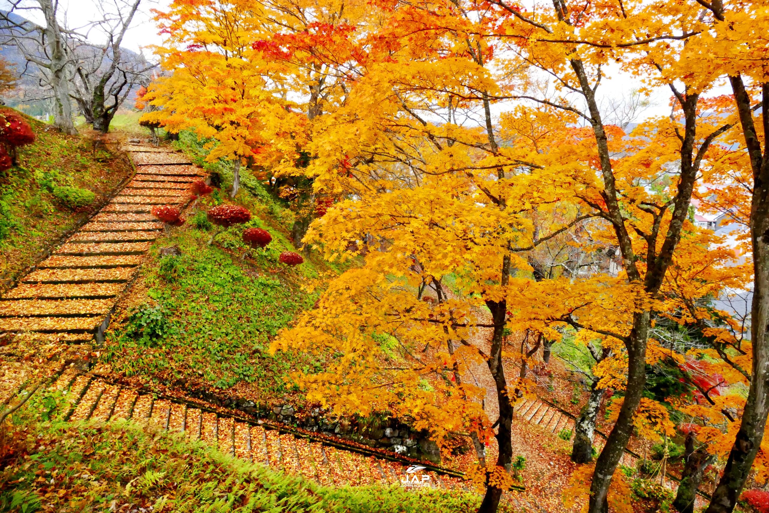 Kamega-jo Park (亀ケ城公園) อีกหนึ่งสวนสวยในเมือง Inawashiro จังหวัด Fukushima ที่งดงามมากในฤดูใบไม้ร่วง โมะมิจิหลากหลายสายพันธ์พร้อมใจกันเปลี่ยนสีแต่งแต้มให้ทั่วทั้งสวนมีสีสันสวยงาม ส่วนในฤดูใบไม้ผลิซากุระมากกว่า 500 ต้นก็พร้อมใจกันเบ่งบานต้อนรับนักท่องเที่ยว