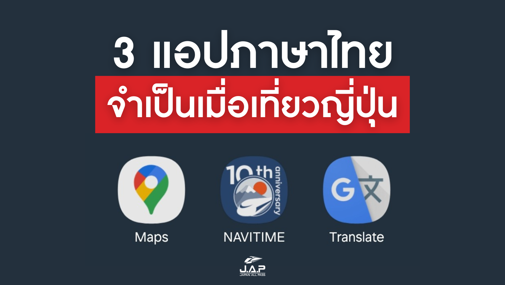 แอปพลิเคชั่นต่างๆ ที่มีประโยชน์ต่อการเที่ยวญี่ปุ่นมีหลายหลายมาก แต่ถ้าให้ต้องเลือก 3 อันดับแรกที่จำเป็นสำหรับมือใหม่และที่สำคัญคือรองรับภาษาไทยด้วย แนะนำ Google Maps, Google Translate และ NAVITIME