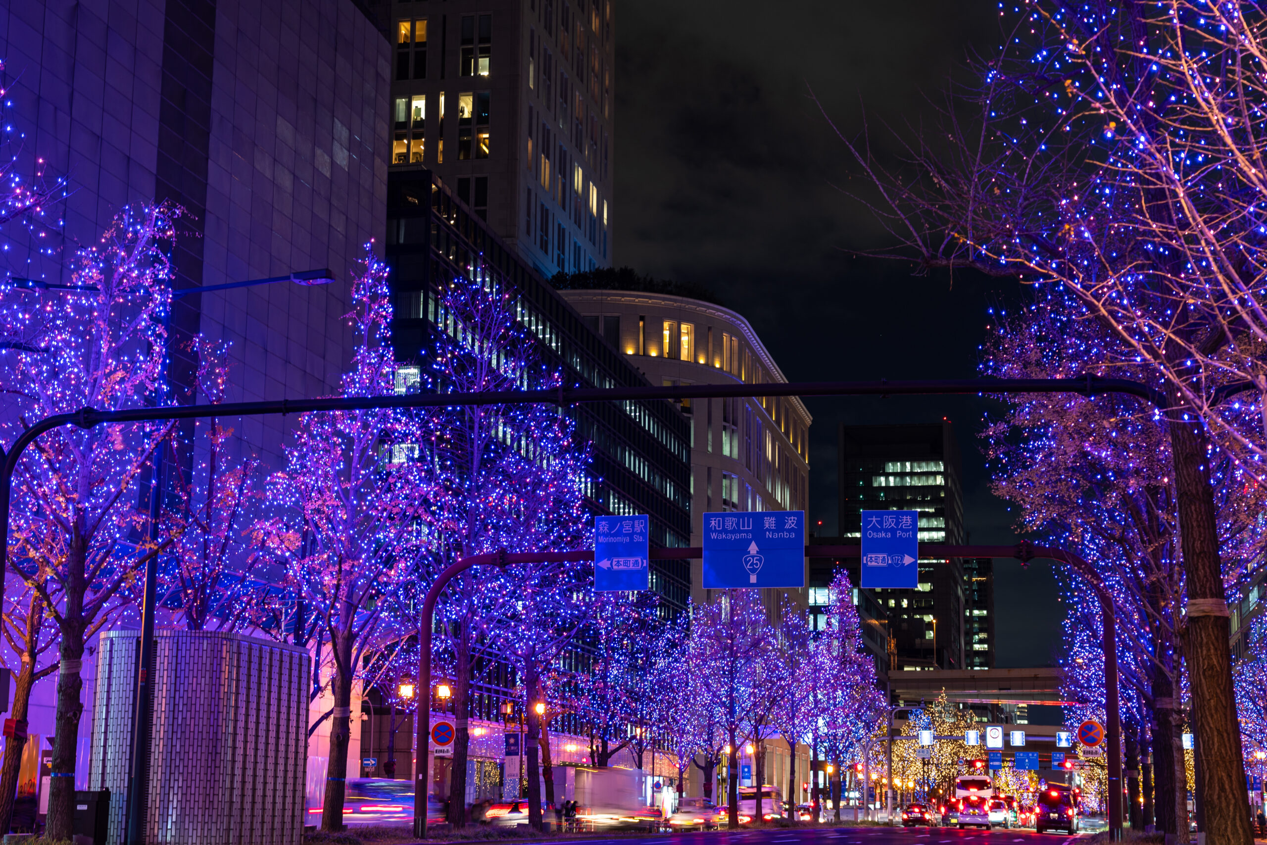 การประดับไฟคัลเลอร์ฟูลบนถนน Midosuji ตั้งแต่ย่านอุเมดะ (Umeda) ไปจนถึงย่านนัมบะ (Namba) เป็นระยะทางกว่า 4 กิโลเมตรเลยทีเดียว