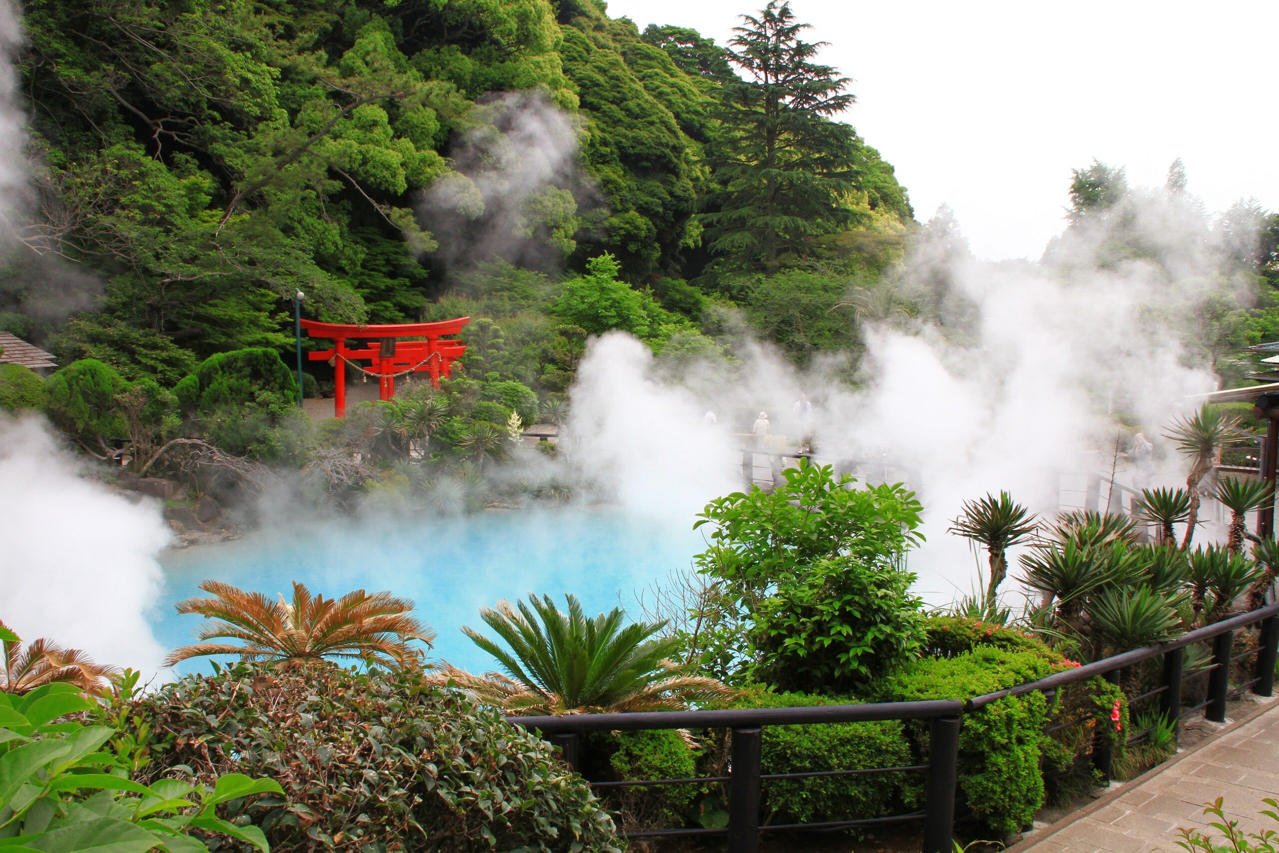 4. ชิราอิเกะ จิโกกุ Shiraike Jigoku (นรกบ่อขาว) บ่อน้ำพุร้อนชิราอิเกะ หรือบ่อน้ำพุร้อนสีขาว ในบ่อแห่งนี้จะประกอบไปด้วยเกลือของกรดบอริก, โซเดียมคลอไรด์, กรดซิลิก และแคลเซียมไบคาร์บอเนต นักท่องเที่ยวจึงมองเห็นออกเป็นสีขาวปนฟ้า ที่ถูกเรียกว่าบ่อขาวเนื่องจากหมอกที่เกิดขึ้นจากน้ำร้อนเป็นสีขาว