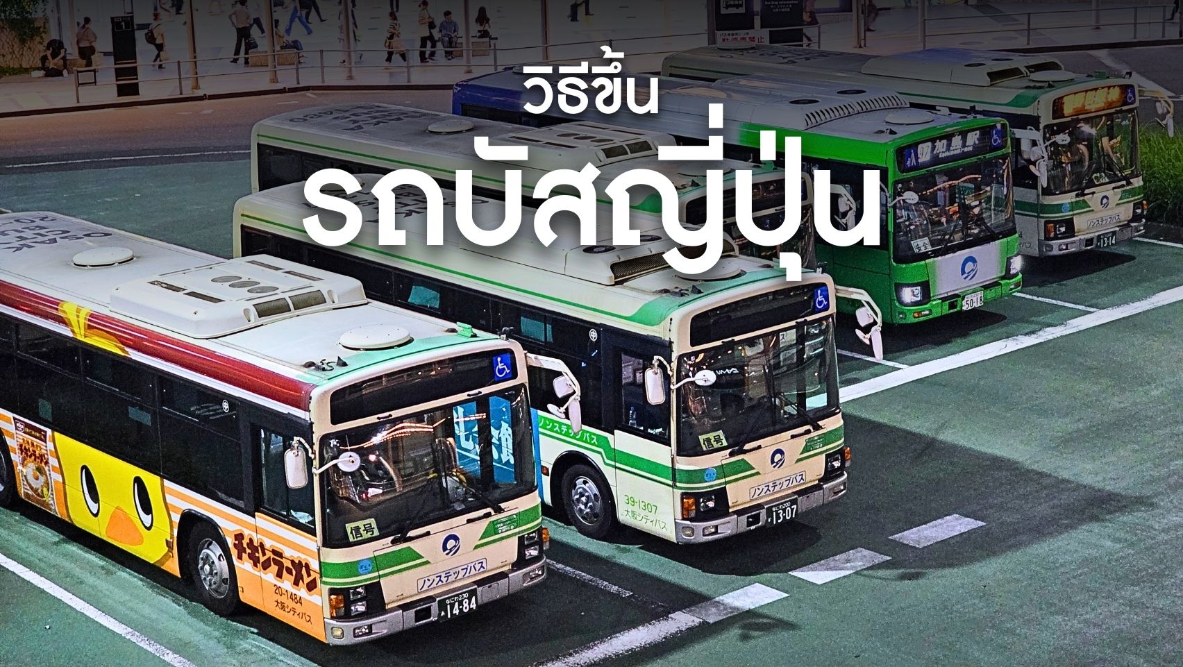 4. บนรถบัสจะมีจอแสดงข้อมูลป้าย (ภาษาญี่ปุ่นและอังกฤษ) และเสียงประกาศ (ส่วนใหญ่เป็นภาษาญี่ปุ่น) กดกริ่งเมื่อต้องการลงรถ และนั่งรอจนกว่ารถจะจอด
