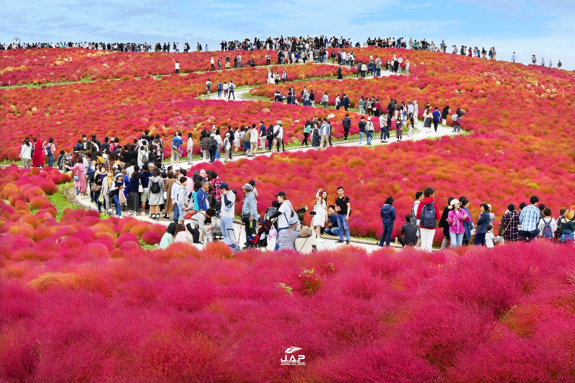 เพื่อนๆที่มาชมใบไม้เปลี่ยนสีที่ประเทศญี่ปุ่นในช่วงกลางเดือนตุลาคมและเต็มอิ่มกับการชมใบไม้แดงแล้ว แต่อยากชมดอกไม้ชนิดอื่นๆดูบ้าง ผมแนะนำให้ใส่แผนเที่ยวไปชมความน่ารักของทุ่ง Kochia ในจังหวัด Ibaraki ครับ