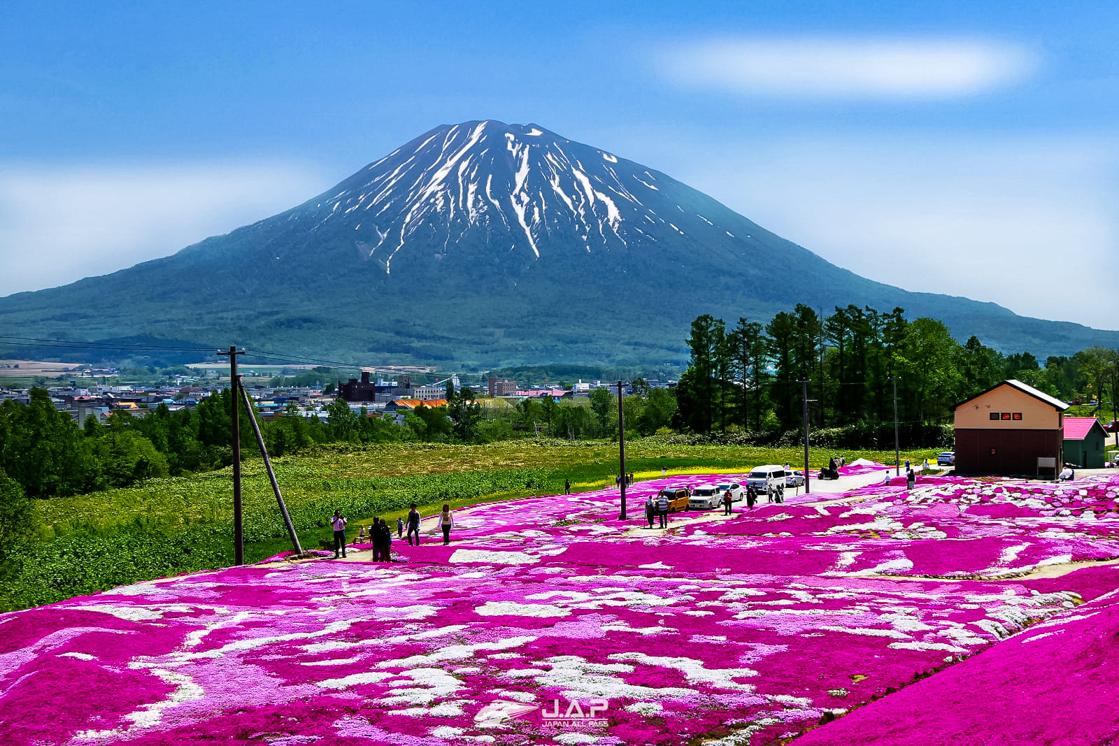 บนเกาะฮอกไกโดมีสวนพิ้งค์มอสที่มีชื่อเสียงอยู่หลายแห่งอย่าง Higashimokoto หรือ Takinoue Shibazakura Park แต่ความพิเศษของ Mishima-San’s Shibazakura Garden นอกจากมีพิ้งค์มอสสีเข้มหลากสีสันแล้วยังเป็น Location ถ่ายภาพทุ่งพิ้งค์มอสที่มีภูเขา Yotei (羊蹄山) รูปร่างคล้ายฟูจิซังเป็นฉากหลังอีกด้วย