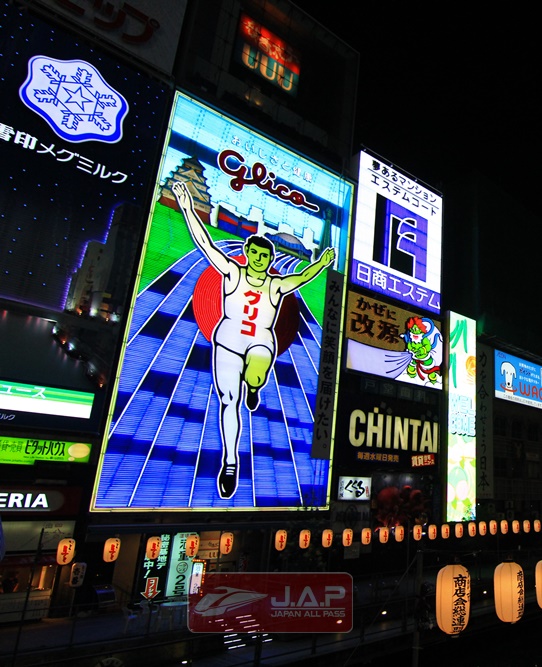 ย่านโดทงโบริ (Dotonbori) ย่านช้อปปิ้งและกินดื่มของโอซาก้า (Osaka) ที่เป็นแหล่งรวมร้านอาหารมากมายเปิดให้บริการ 24 ชั่วโมง สัญลักษณ์ของย่านนี้คือป้ายไฟกูลิโกะและปูคานิโดราคุ ที่ใครๆมาก็จะต้องยืนถ่ายรูปกับป้ายไฟนี้ไม่งั้นจะถือว่ามาไม่ถึงโดทงโบริค่ะ
