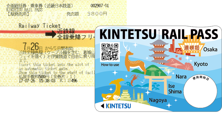 ตั๋วรถไฟคินเทสึ หรือ Kintetsu Rail Pass จำหน่ายให้เฉพาะนักท่องเที่ยวชาวต่างชาติเท่านั้น ตั๋วใบนี้ให้คุณขึ้นลงรถไฟฟ้าในพื้นที่บริการของรถไฟฟ้าคินเท็ตสึได้อย่างไม่จำกัด!  สุดคุ้มเพราะใช้เที่ยวได้ทั้ง โอซาก้า/นารา/เกียวโต/อิเซะชิมะ/นาโกย่า
